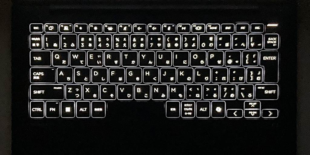 キーボードのバックライトは、F5キーに割り当てられていて、キーを押すだけで明→暗→OFFの順で切り替えられます。