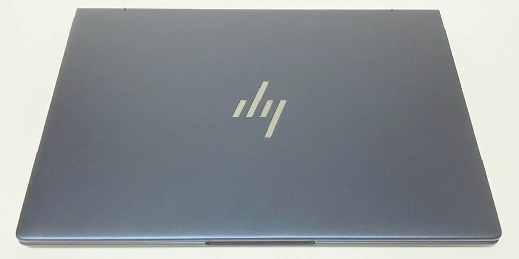 天板中央にHPのプレミアムロゴ。最上位製品のみ鏡面仕上げ