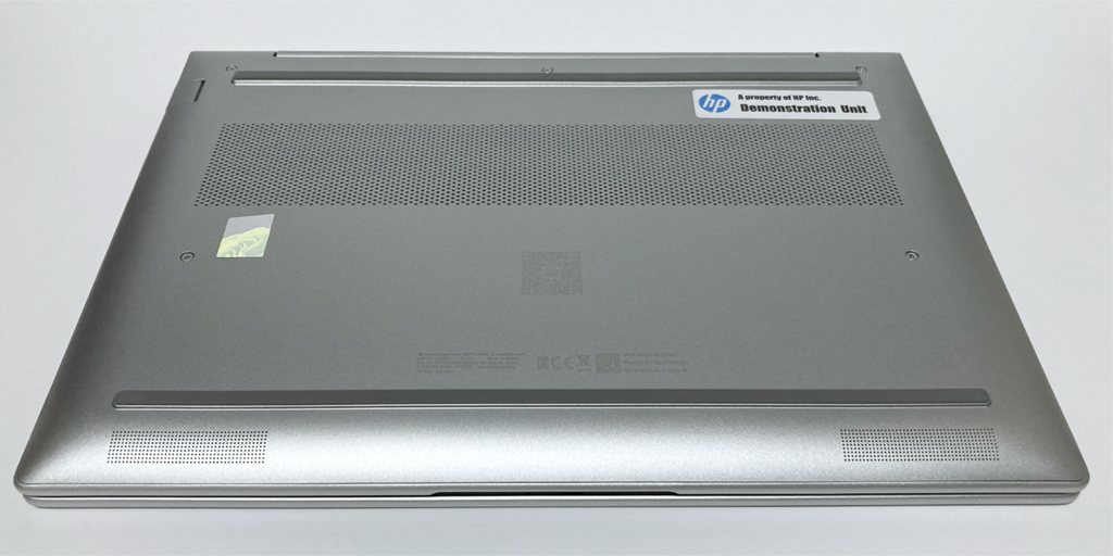底面前方の左右にスピーカーが配置されています。どこまで音質を気にするかにもよりますが、ベンチマークなどの音声を聞いた限り、ノートPCとしてはしっかり聞こえて問題も感じませんでした。