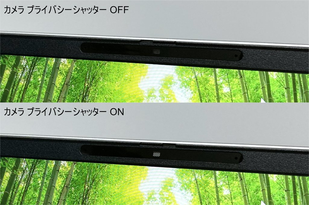 Webカメラにはプライバシーシャッターを搭載。カメラ上部のつまみをスライドして物理的に映像を遮断できます。Web会議などで意図せず見られたくないシーンを見られる事故を防げるので安心です。