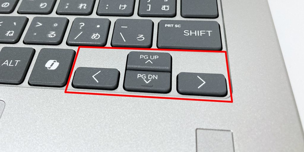 スクリーンショットを撮るための、PRT SCキーは右側のSHIFTキーに割り当てられており、他機種のように奥側に割り当てられているより使いやすいです。