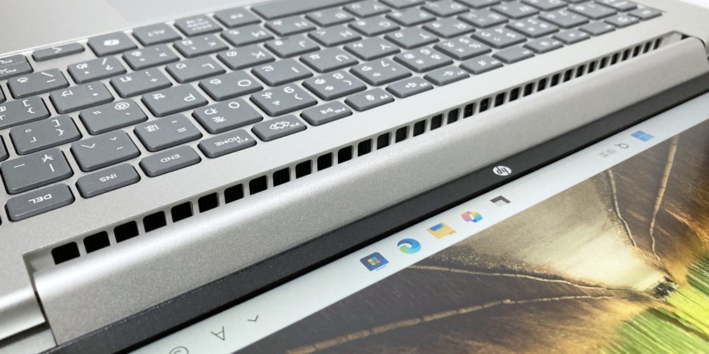 ディスプレイとキーボード面の間に排気口が配置されています。