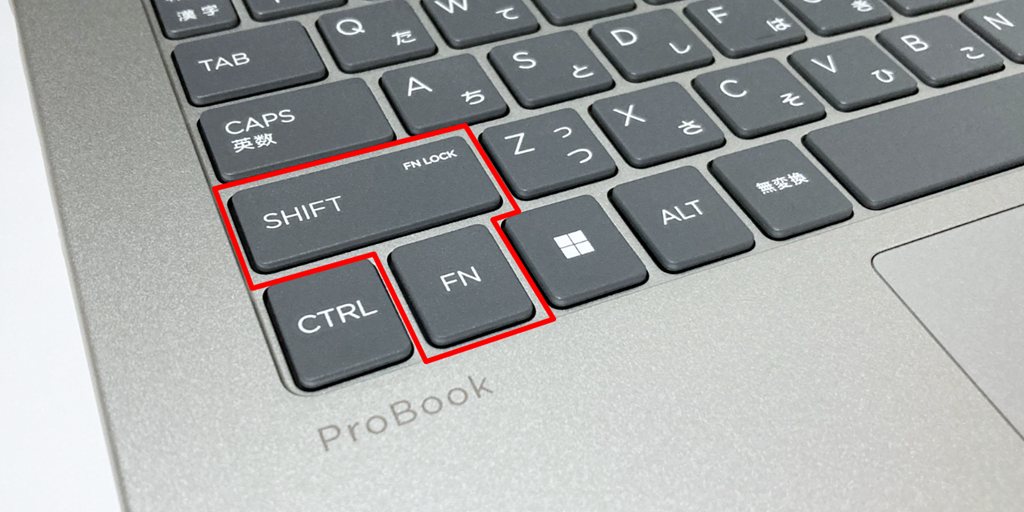 左側SHIFTキーにはFN LOCK機能が割り当てられています。FNキーのすぐ上にあるため、ESCキーに割り当てられているよりも使いやすいです。